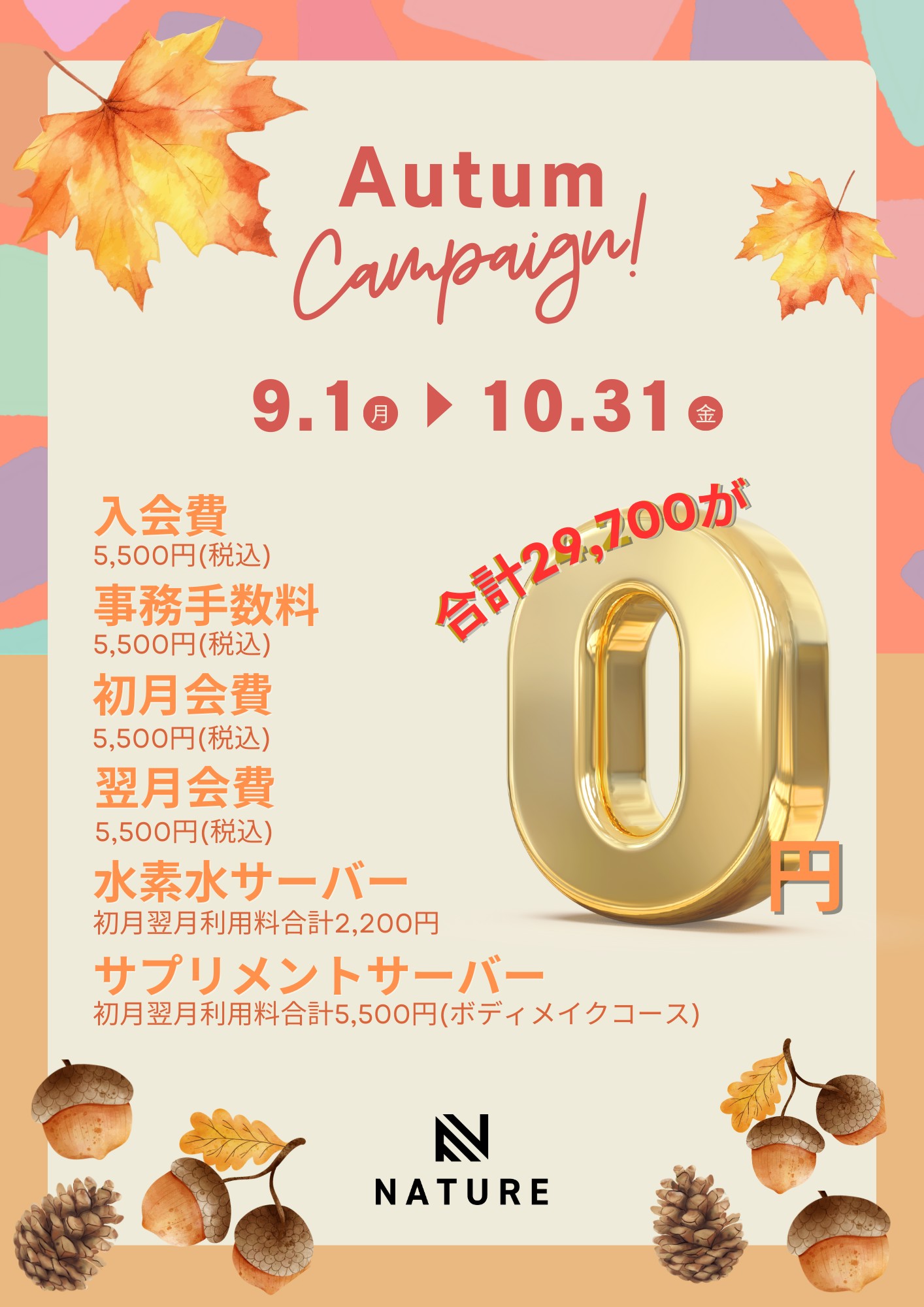 9/1~10/31までお得な入会キャンペーンを実施中🎑